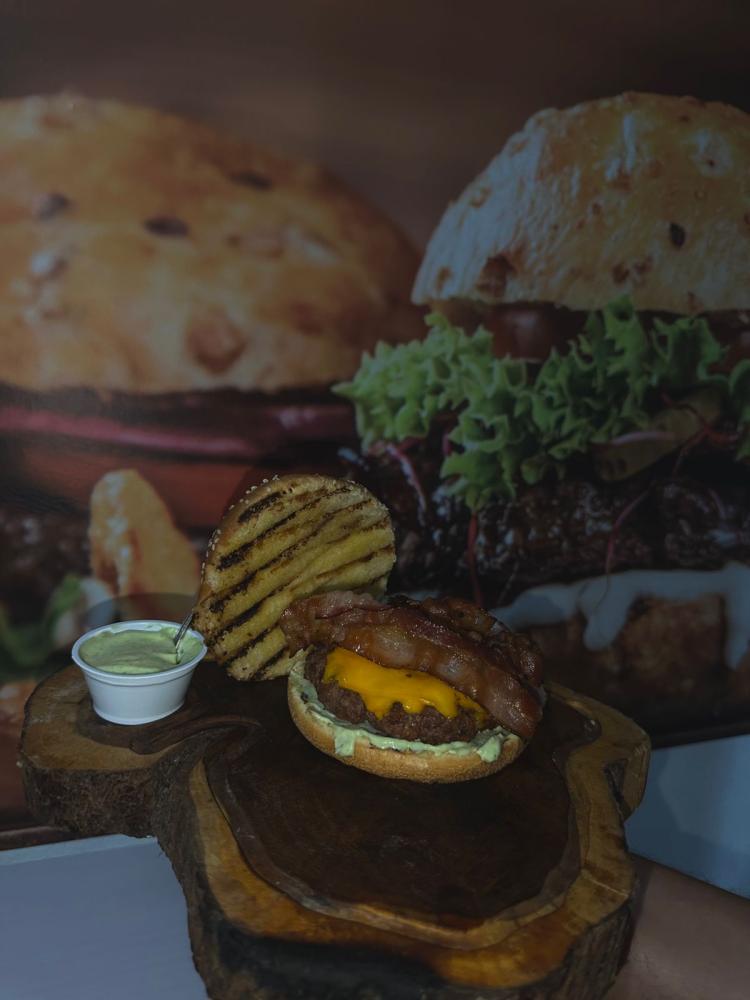 Blade 130 grama,pão, queijo cheddar e bacon (molho da casa)
